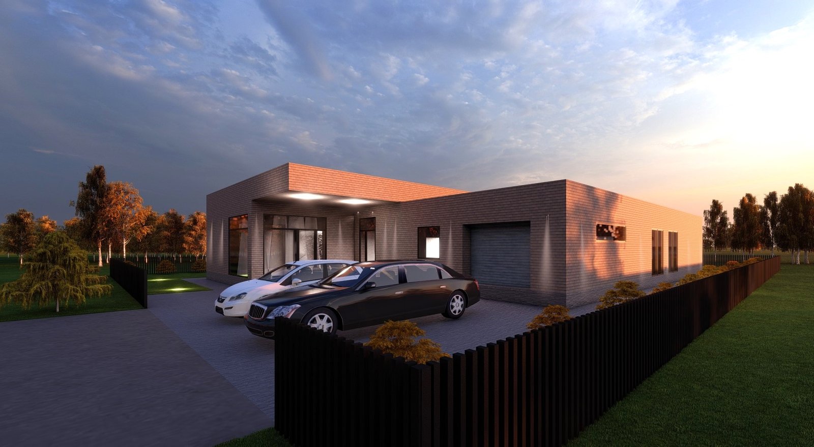 Namas Elektrėnuose, sukurtas šeimai, mėgstančiai ramų gyvenimą gamtoje. Užsakovai pageidavo sukurti namus, iš kurių galėtų dirbti nuotoliu ištisas savaites, o nutarę pasidarbuoti didmiestyje, galėtų sugrįžti kaip į ramybės ir poilsio oazę. Todėl projektui buvo pasirinktas nuošalus sklypas, apsuptas turtingos gamtinės aplinkos, pilnas ramybės ir žalumos. Minimalistinės architektūros formos teikia ramybės ir harmonijos pojūtį, jaukiai įsiliedamos į laukų simfoniją. Klinkerio plytų mūras fasadui suteikia tvirtumo, santūrumo ir solidumo. Didelės vitrinos ir erdvi terasa leidžia jausti betarpišką ryšį su aplinka.